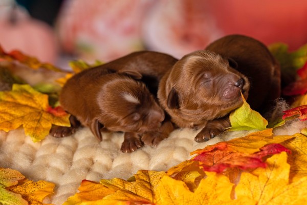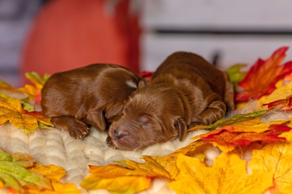 Roxy heeft op 3 april 2023 vijf mooie donkerrode pups van Tibby gekregen. De eerste foto's van de 3 reutjes en 2 teefjes staan hieronder.